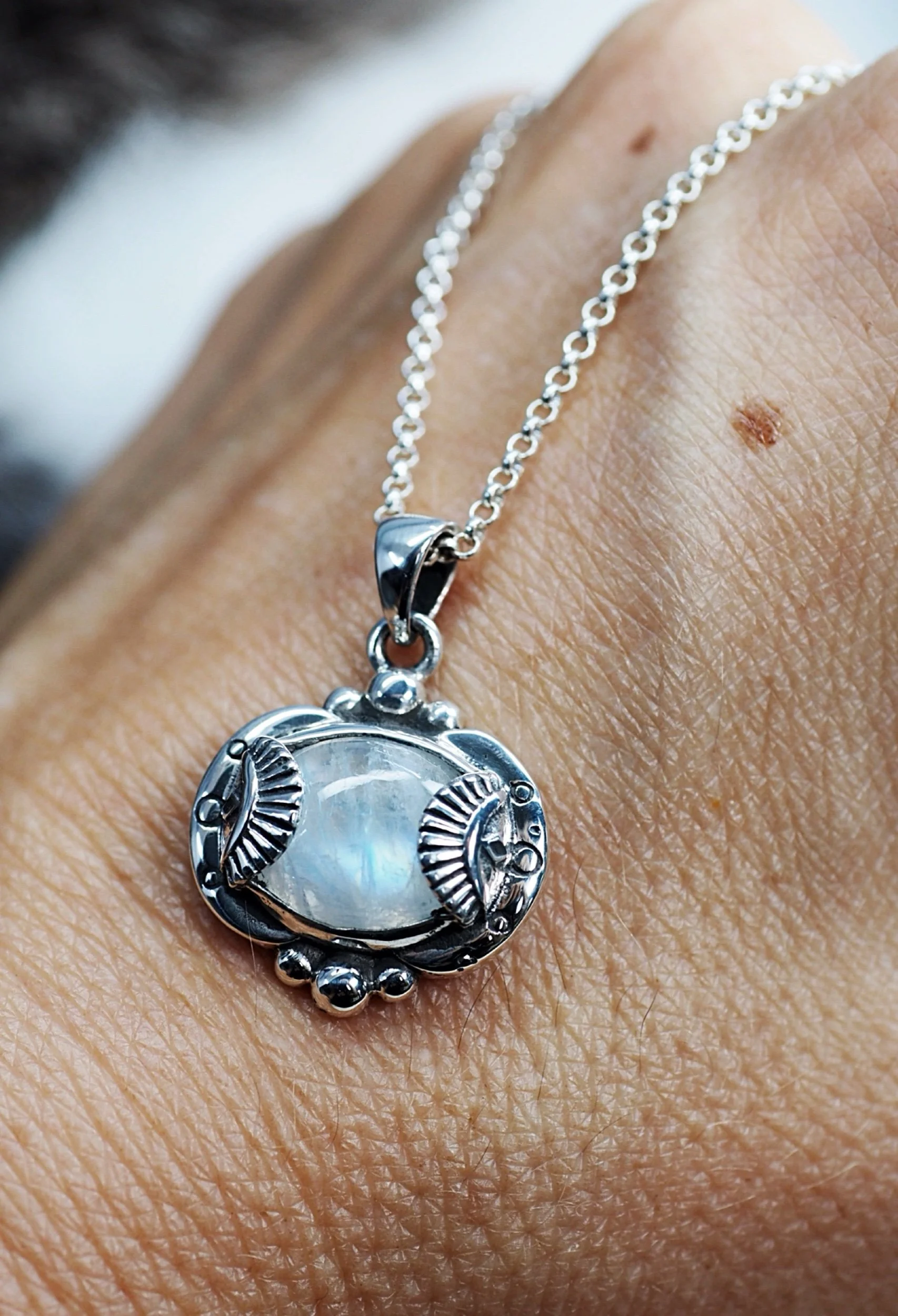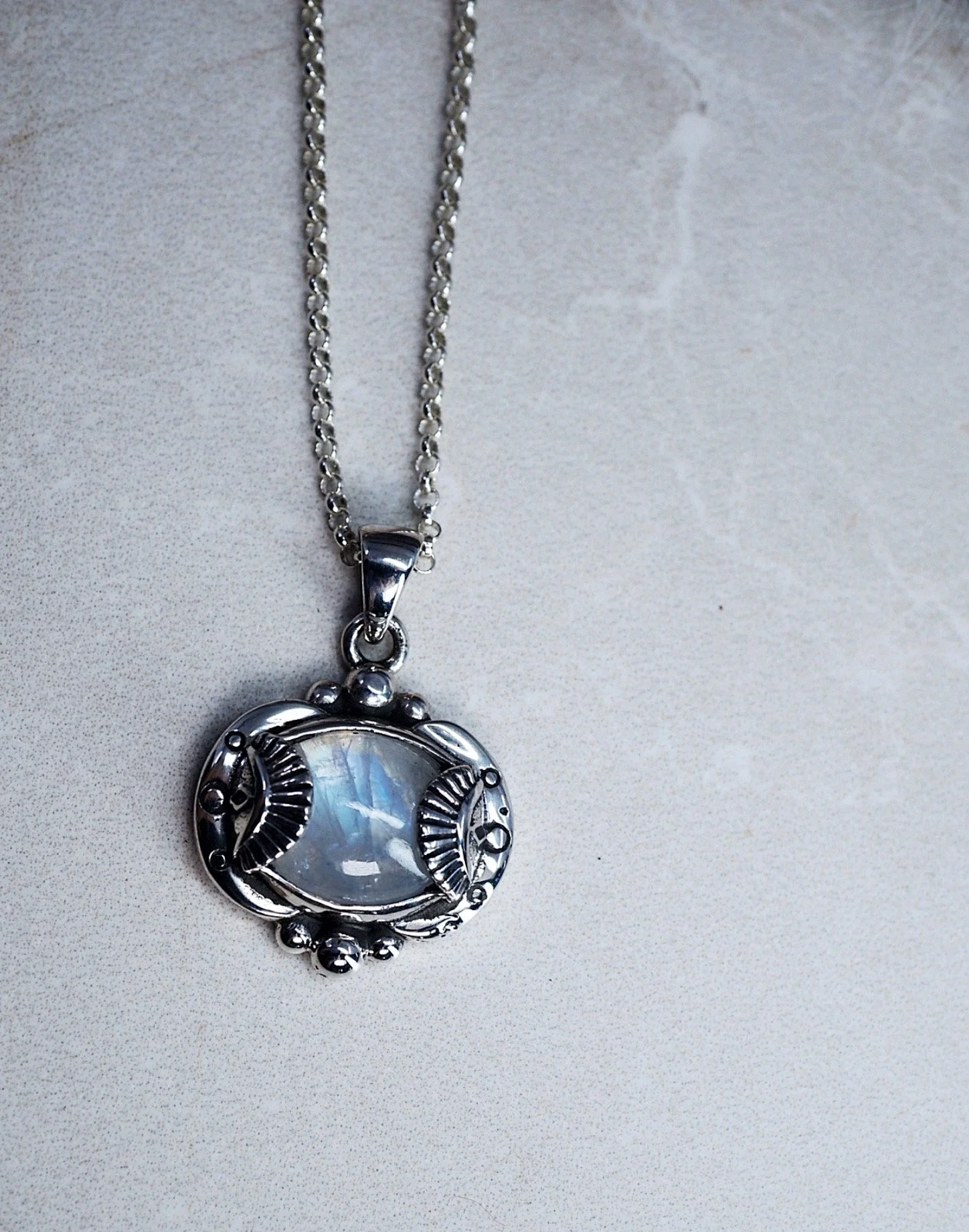 Stunning moonstone jewel wrapped in detailed silver. A unique creation that unlocks the inner goddess within.