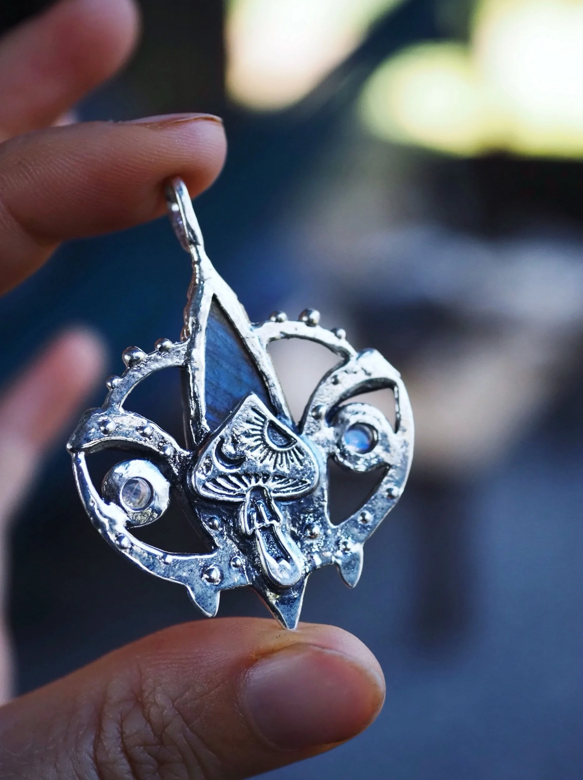 Detailed mushroom on back of pendant
