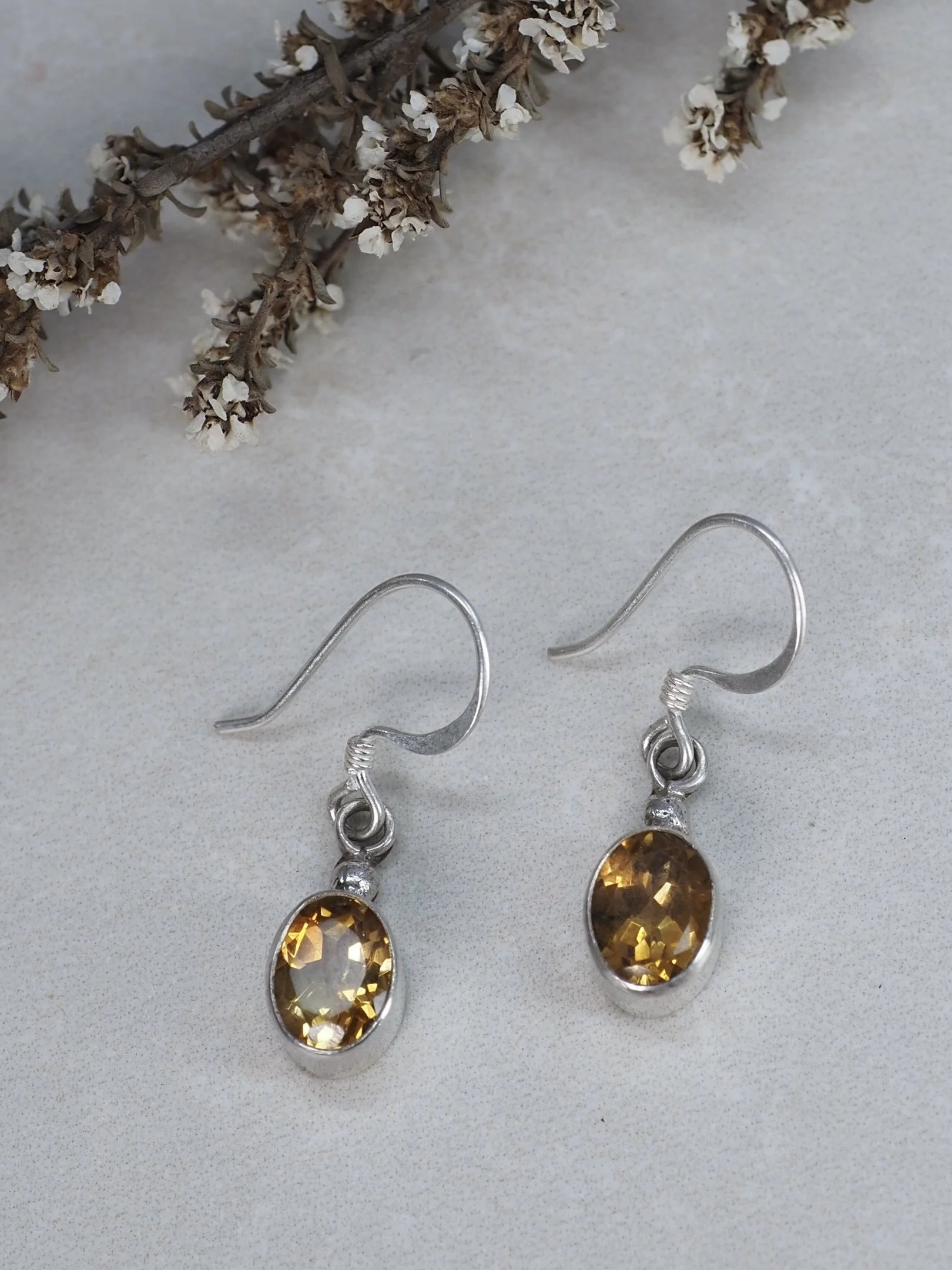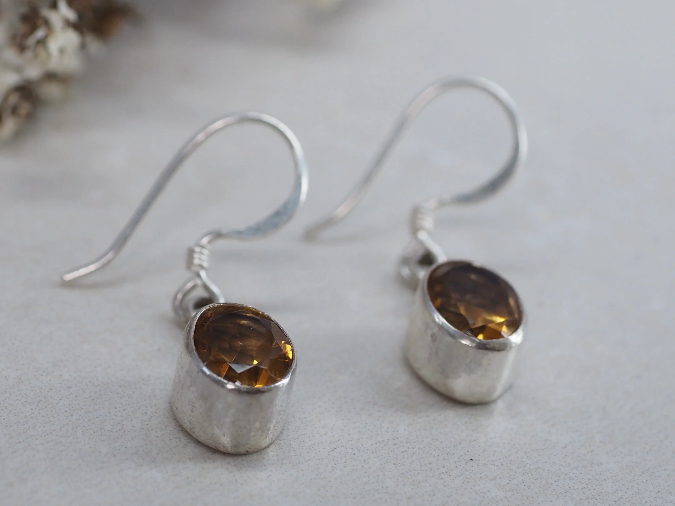 A beautiful earring that is easy to wear throughout the day, with it’s light weight and beautiful drop of faceted citrine.