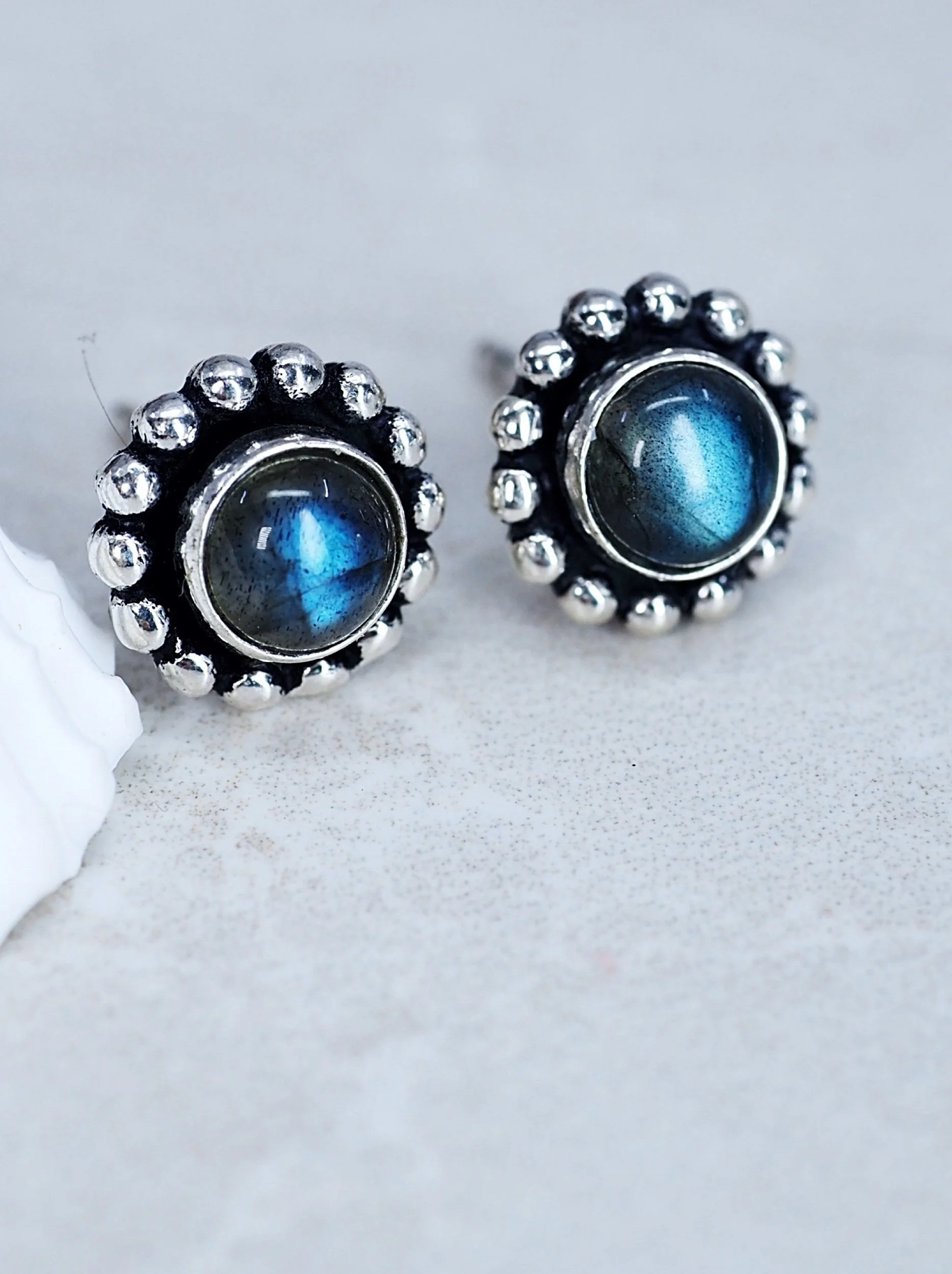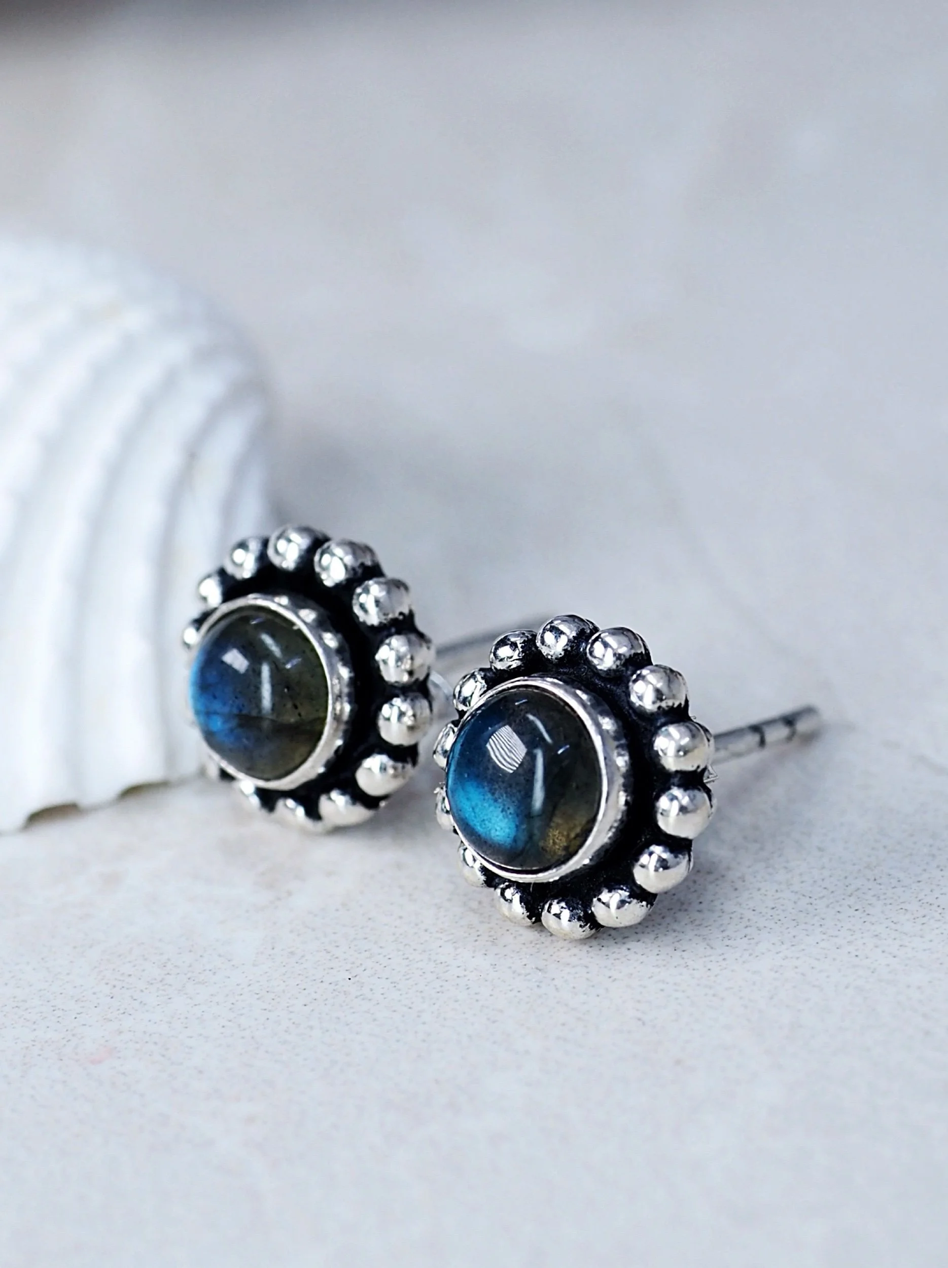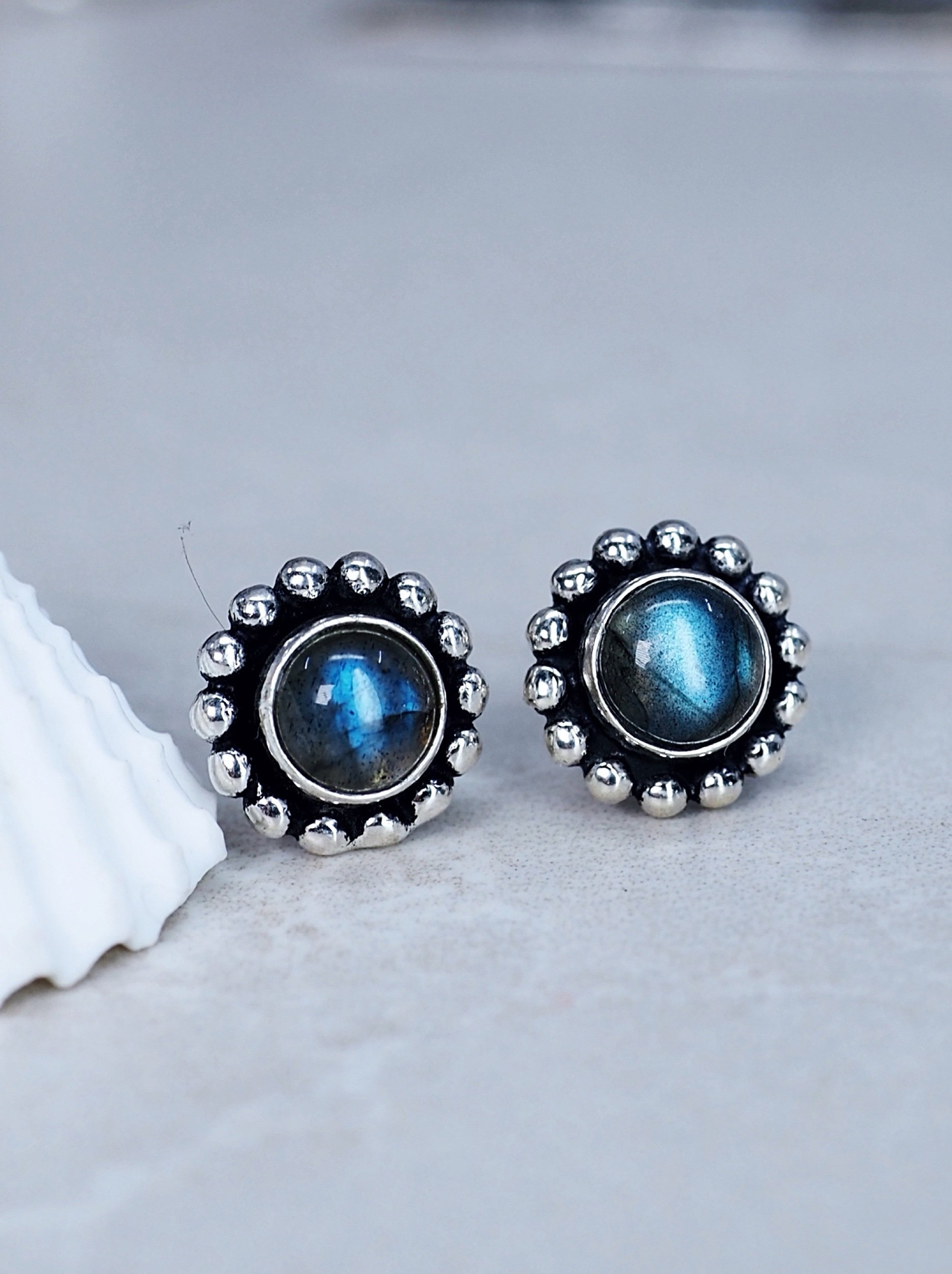 Magnificent Labradorite set into high quality silver to form this stunning set of studs. With added detailing around the crystal, these make a perfect pair of earrings for an occasion or your everyday go to.