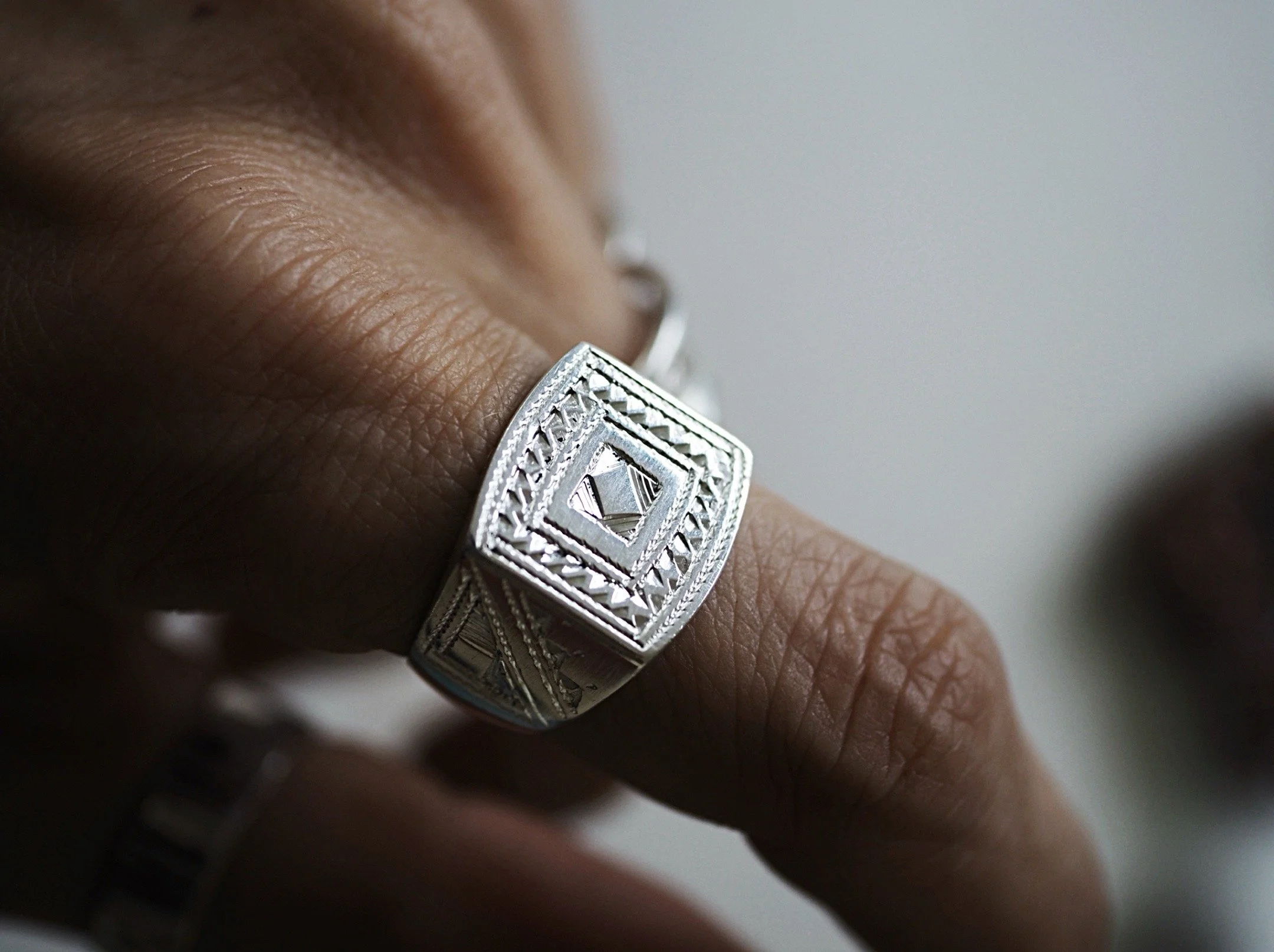 In the heart of the Sahara, Tuareg artisans handcraft every piece of jewellery using ancient skills passed down for generations. Each mark, line, and dot tells a story—from ants running in the sand to the circular symbol of the jackal. The patterns they engrave are visual echoes of their environment, culture, and nomadic way of life.