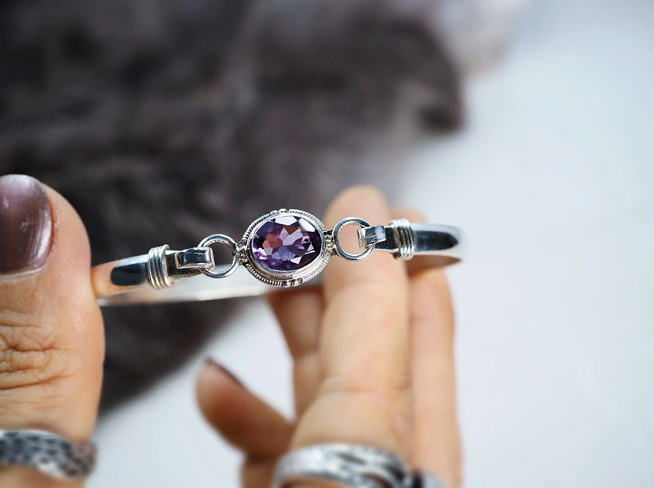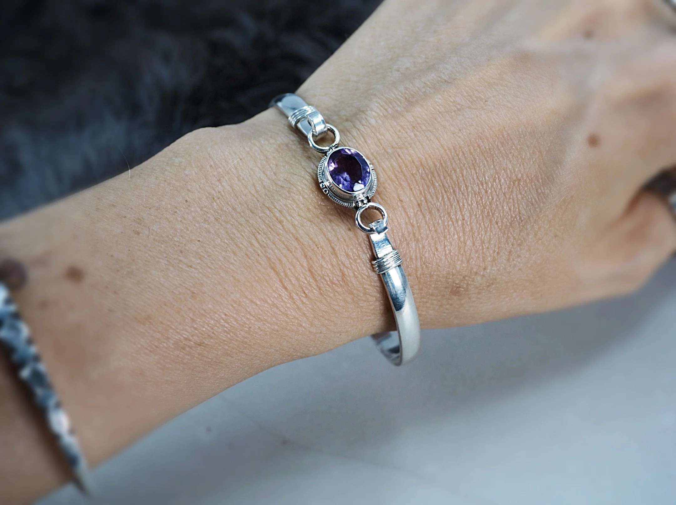 A tension bangle works by using gentle pressure to hold its shape and stay securely closed. Always slightly open the bangle before putting it on; when removing it, squeezing can release some of the tension, so simply re-tension it by gently opening the bangle again before wearing it next time.